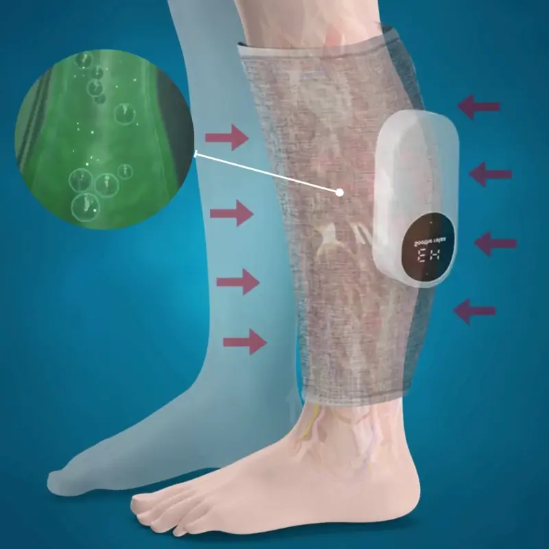 موجات لطيفة تضغط وتُفرِج عن عضلات الربلة، تحاكي حركة العضلة لما كنتِ أكثر نشاطًا. هذا يساعد على دفع السوائل العالقة للأعلى—تمامًا مثل علاج المستشفى بعد الجراحة.